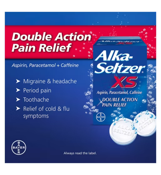 Alka-Seltzer XS must always be dissolved in a glass of water prior to oral administration.