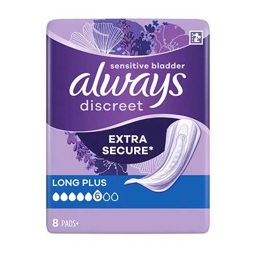 Ideal for heavier needs. Always Discreet Incontinence Pads Long Plus make you feel extra secure, give you extra coverage and absorbency so you can stop worrying about leaks. Each pad is designed to offer you trusted protection from leaks, odour control, instant-dryness, a soft & gentle feel on skin, and a discreet fit. Their structure enables strong protection with an ultra-thin core so you won’t have to compromise between comfort and protection. If sneezing or laughing causes bladder leaks, you can feel confident with the discreet and reliable protection offered by Always Discreet Pads. Also useful as maternity pads for postpartum incontinence.