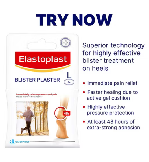 Improved Elastoplast plaster technology for highly effective blister treatment with hydrocolloid.
